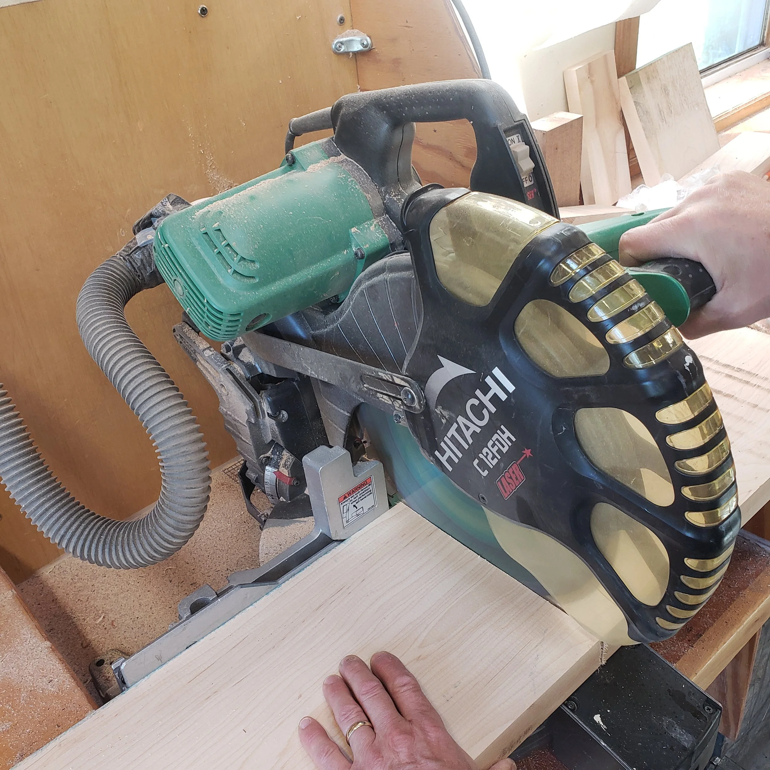 Two blanks of different woods are temporarily fastened together. I envision the final design and lay out the curves to be cut. If things go south, this is likely when it will happen. Every cut has zero margin of error if the joints are to be perfect. The precision at this stage comes from decades of practice and thousands of cuts made. “A-Game” every time, or all that work becomes scrap. Honestly, it’s a thrill every time it comes out right!